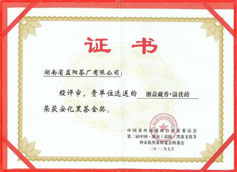 第二届中国湖南黑茶文化节金奖(藏香·溢)