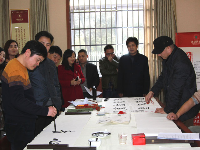 2015年12月8日下午,益阳市总工会党组书记、副主席郭谷轩,市总工会副主席、市书法家协会副主席唐新华,市书法家协会常务副主席、秘书长石印文组织市书法名家莅临益阳茶新葡京app举行以“翰墨茶香”为主题的笔会活动。