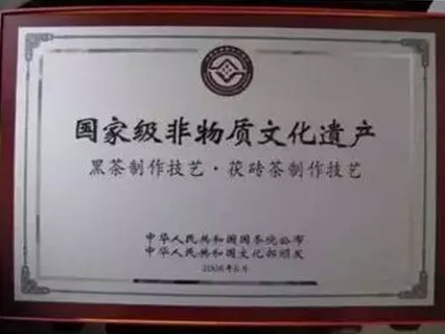 2008年,茯砖茶制作技艺作为重要的历史文化遗产,被列入国家级非物质文化遗产保护名录,益阳茶新葡京app为国家非物质文化遗产茯砖茶制作技艺唯一传承保护单位。2018年,茯砖茶制作技艺国家级代表性传承人的桂冠又落在了公司副总经理刘杏益的身上,这充分说明了,公司在茯砖茶制作技艺的传承与保护方面所做的努力与贡献得到了高度认可。