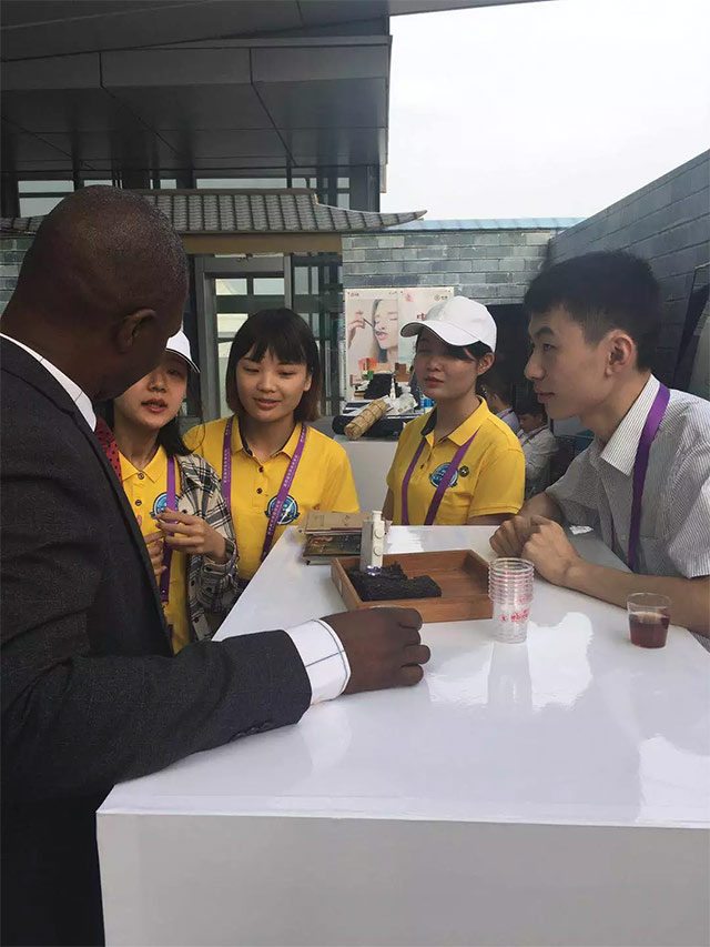 与会非洲友人品饮湘益茯茶并对湘益茯茶益生源颇感兴趣