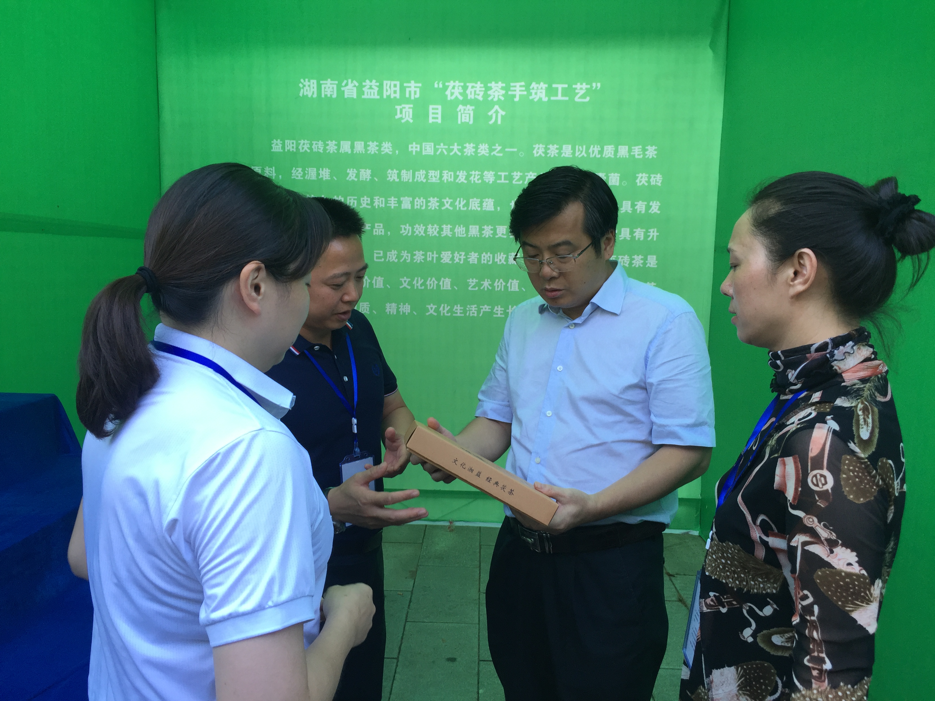 湖南省文化和旅游厅非遗处处长颜喜(右一)莅临展位指导