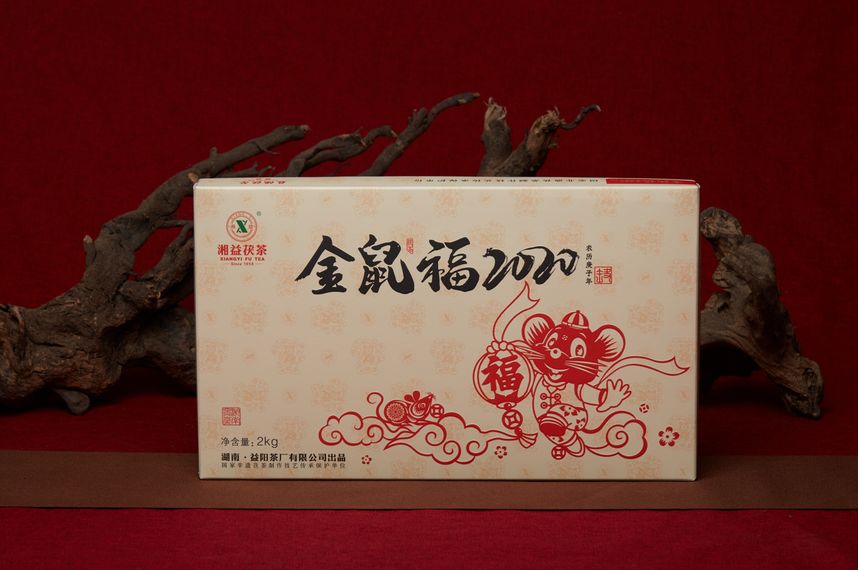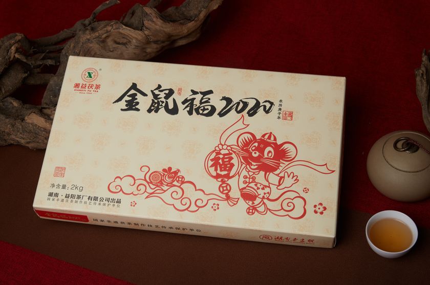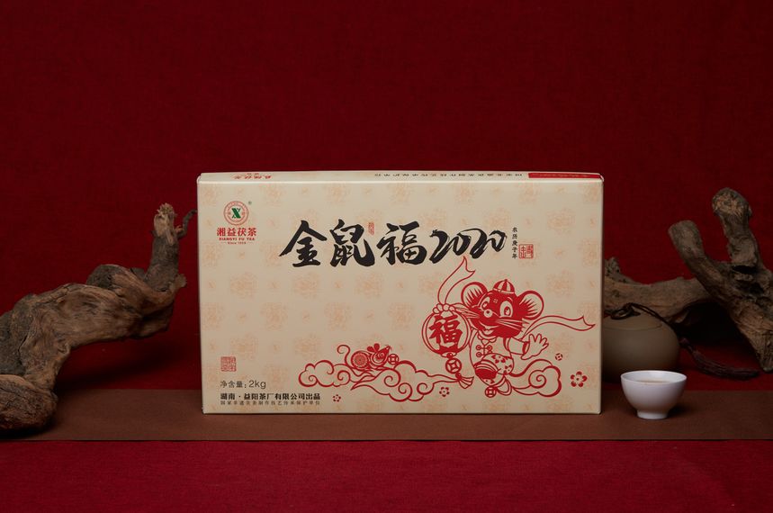 包装风格依旧延续以往生肖茶传统剪纸风格,以中国红为基调,大气简洁又不失喜庆吉祥的年味,满载湘益诚挚的新年祝福。外盒采用“鼠+福”的视觉形象,寓意“金鼠送福”、“多子多福”。灵敏讨喜的生肖鼠诙谐生趣,灵动鲜活,极富中国传统风俗趣味和文化内涵,为大家带来鼠来运宝、大吉大利的美好祝福。此次包装还对外盒材质进行了升级,更加坚固硬挺,希望为茶友带去更好的体验。