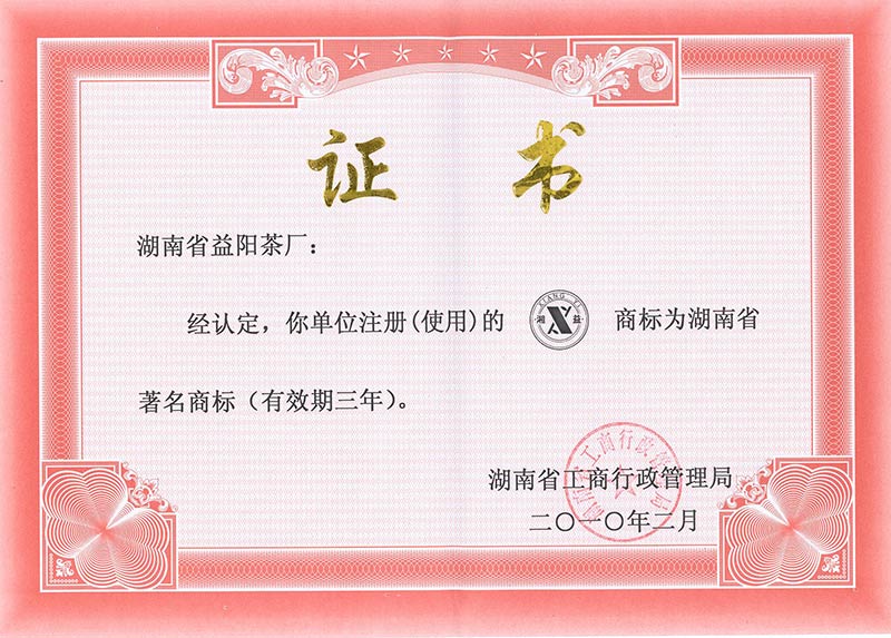 著名商标证书