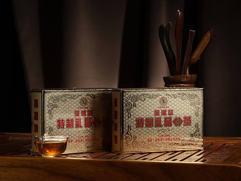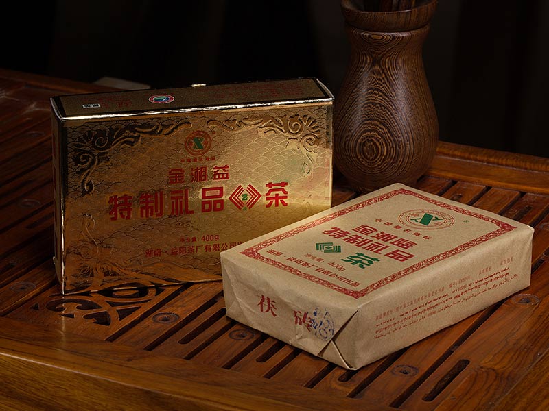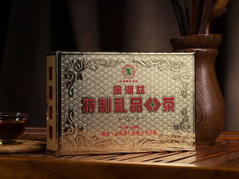 2002年,我公司通过改进生产工艺和技术设备,研制开发了“金湘益”特制礼品茯茶。该产品采用优质黑毛茶为原料,科学精制而成,具有形美、质佳、味香、金花普茂、滋味醇和的特点。