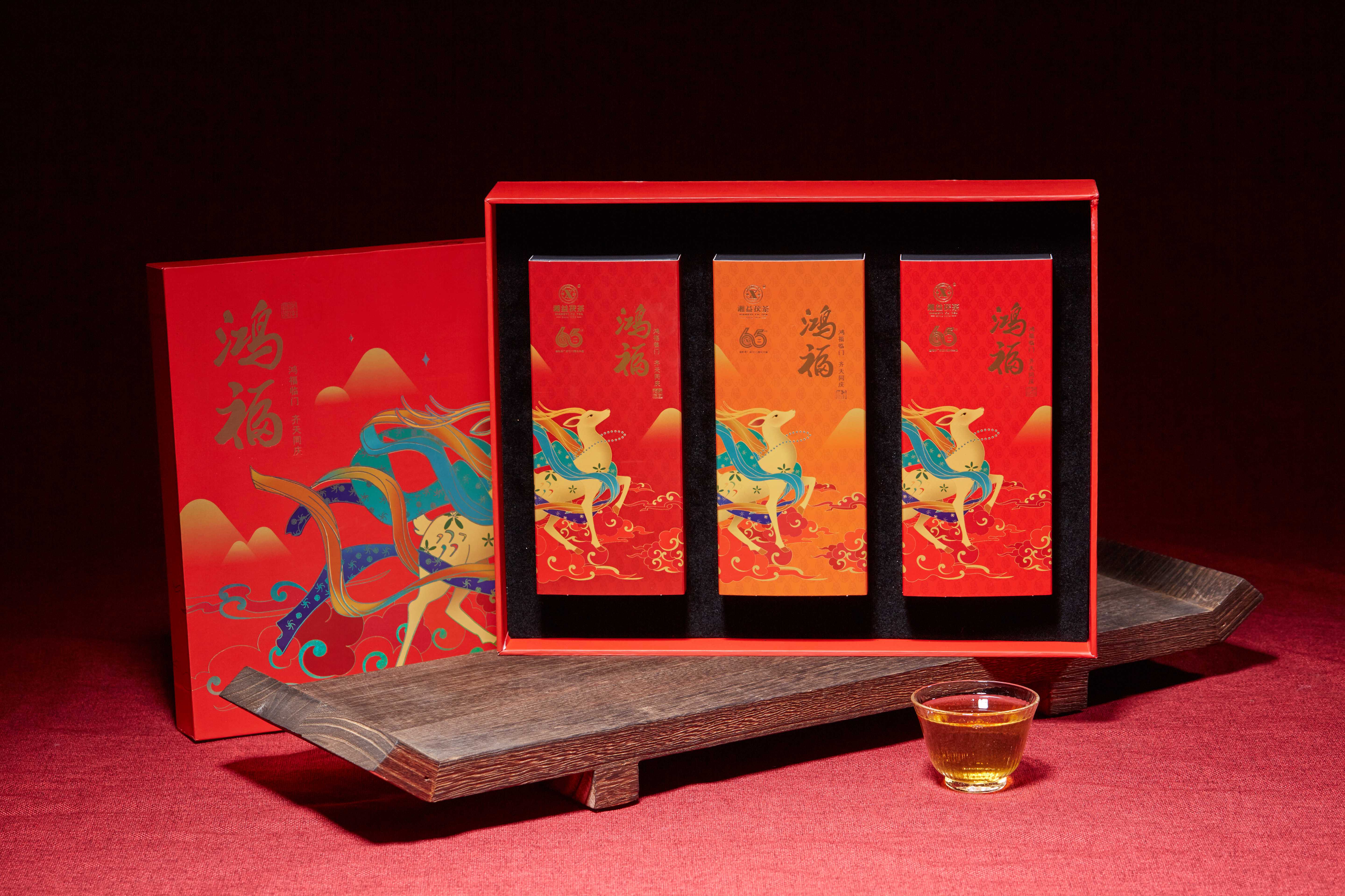 馈赠亲朋,寓意美好。同时茯茶保健养生的功效,让送礼有新意,更有心意。以【鸿福】祝之,情礼自在茶中,祝愿鸿福临门,福到好运到。