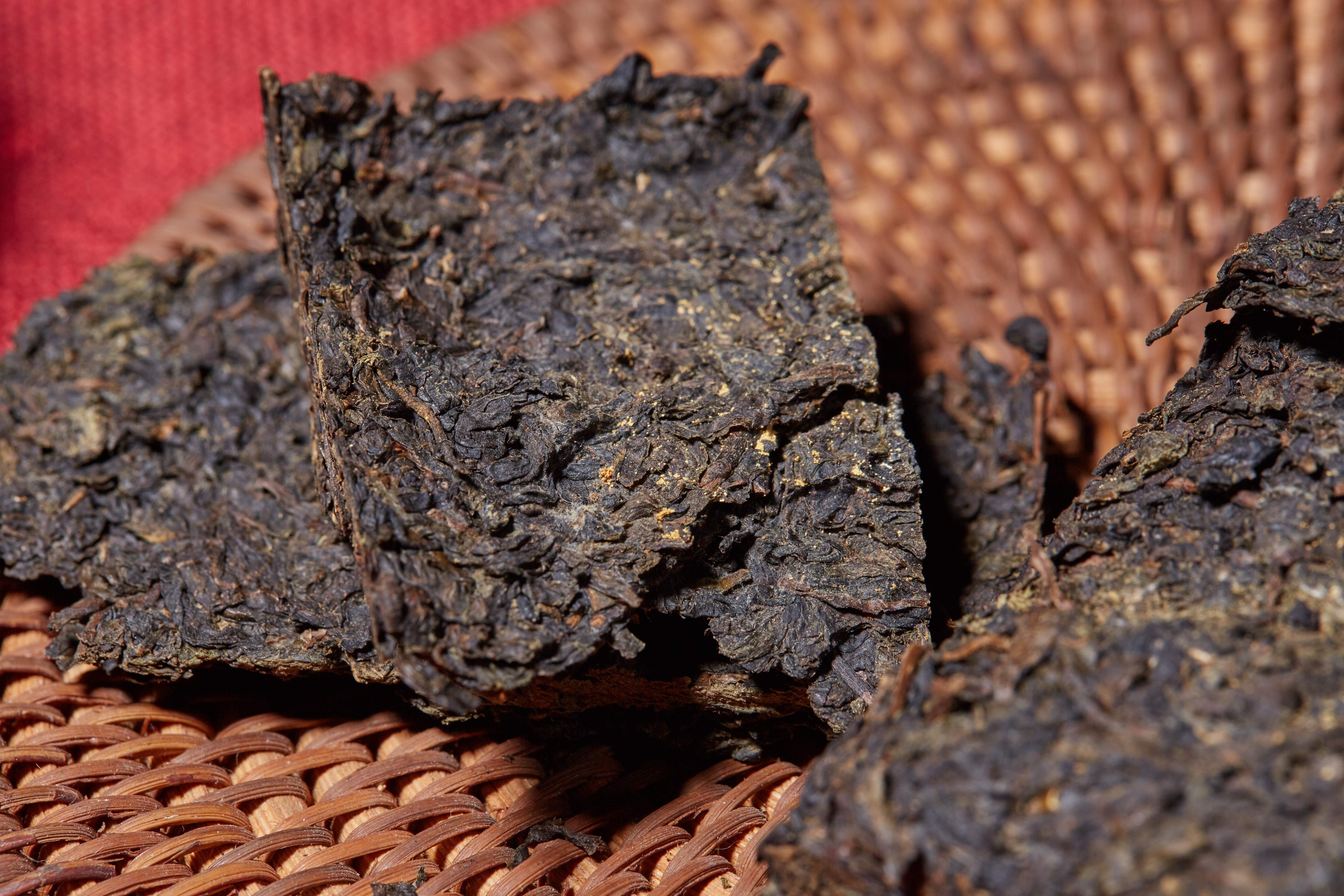 鲜叶再经杀青、揉捏、渥堆等工艺环节初制成黑毛茶。条索紧结、较圆直、嫩度较好,色泽黑润,从原料上保证了优厚的物质基础。