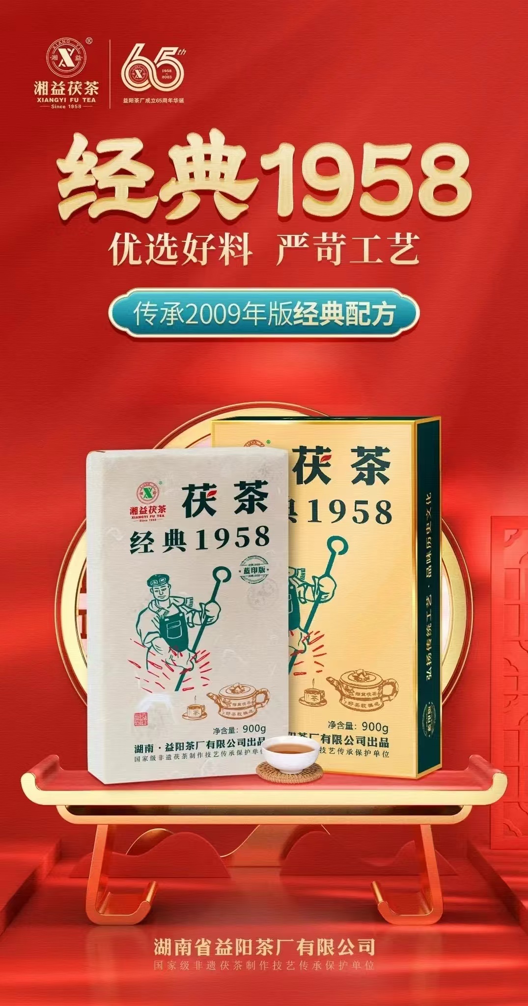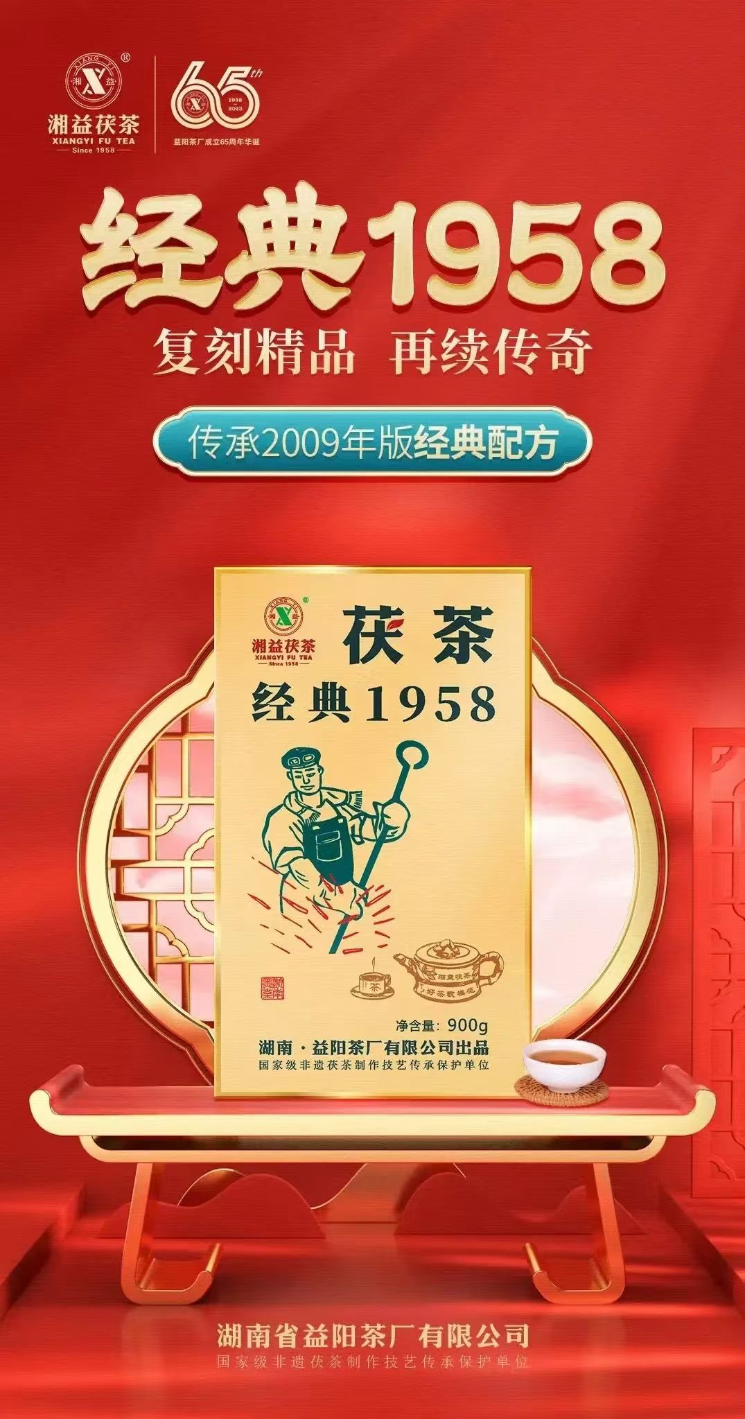 2023年,湘益积极响应市场对经典的呼声,传承匠心,复刻精品,推出〖经典1958(蓝印)茯茶〗,再现传奇风味。