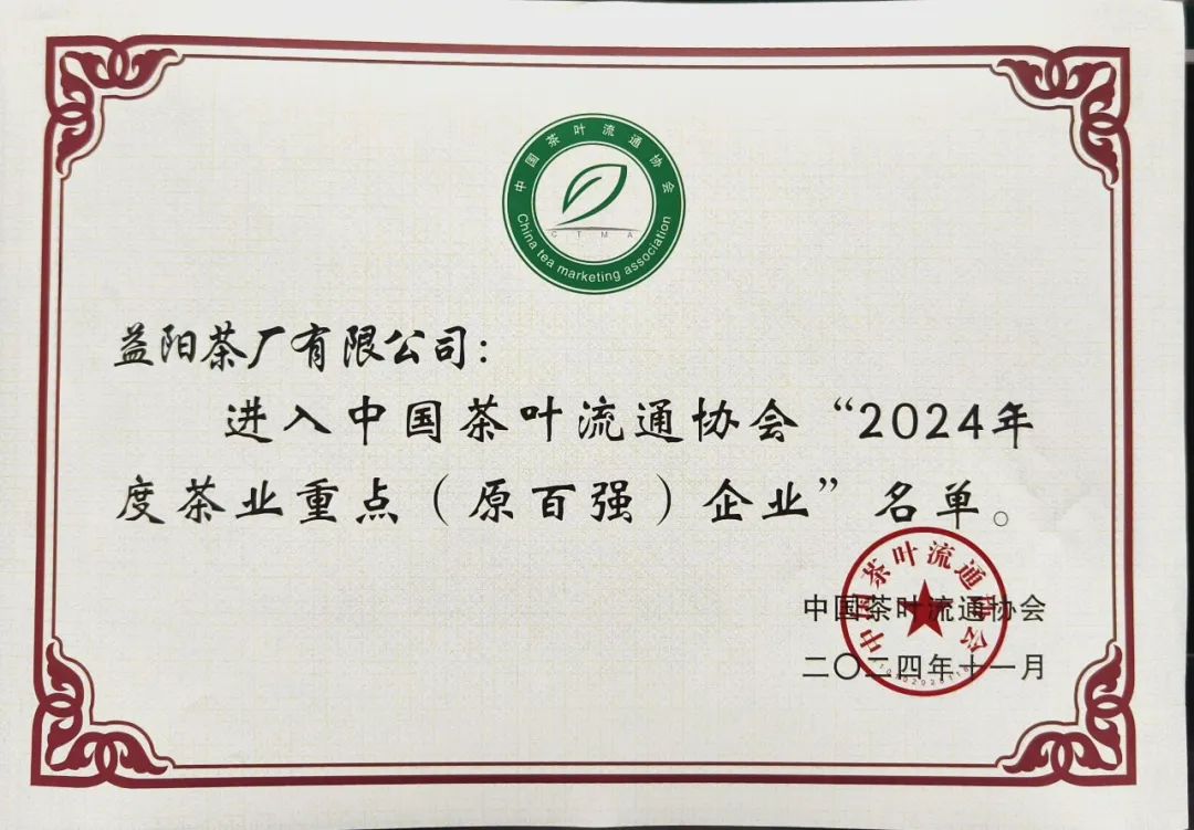益阳茶新葡京app最新荣获“2024年度茶业重点企业”