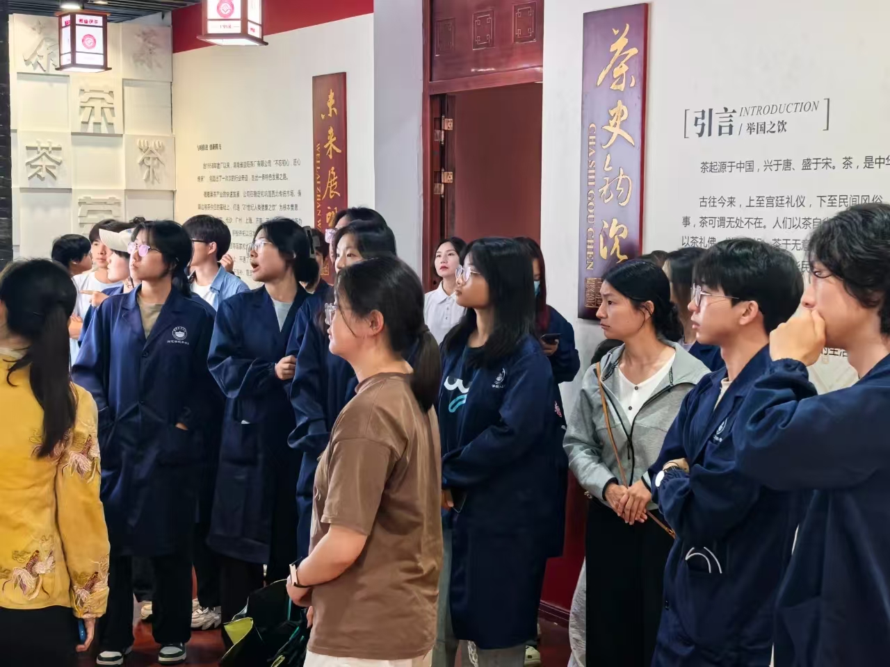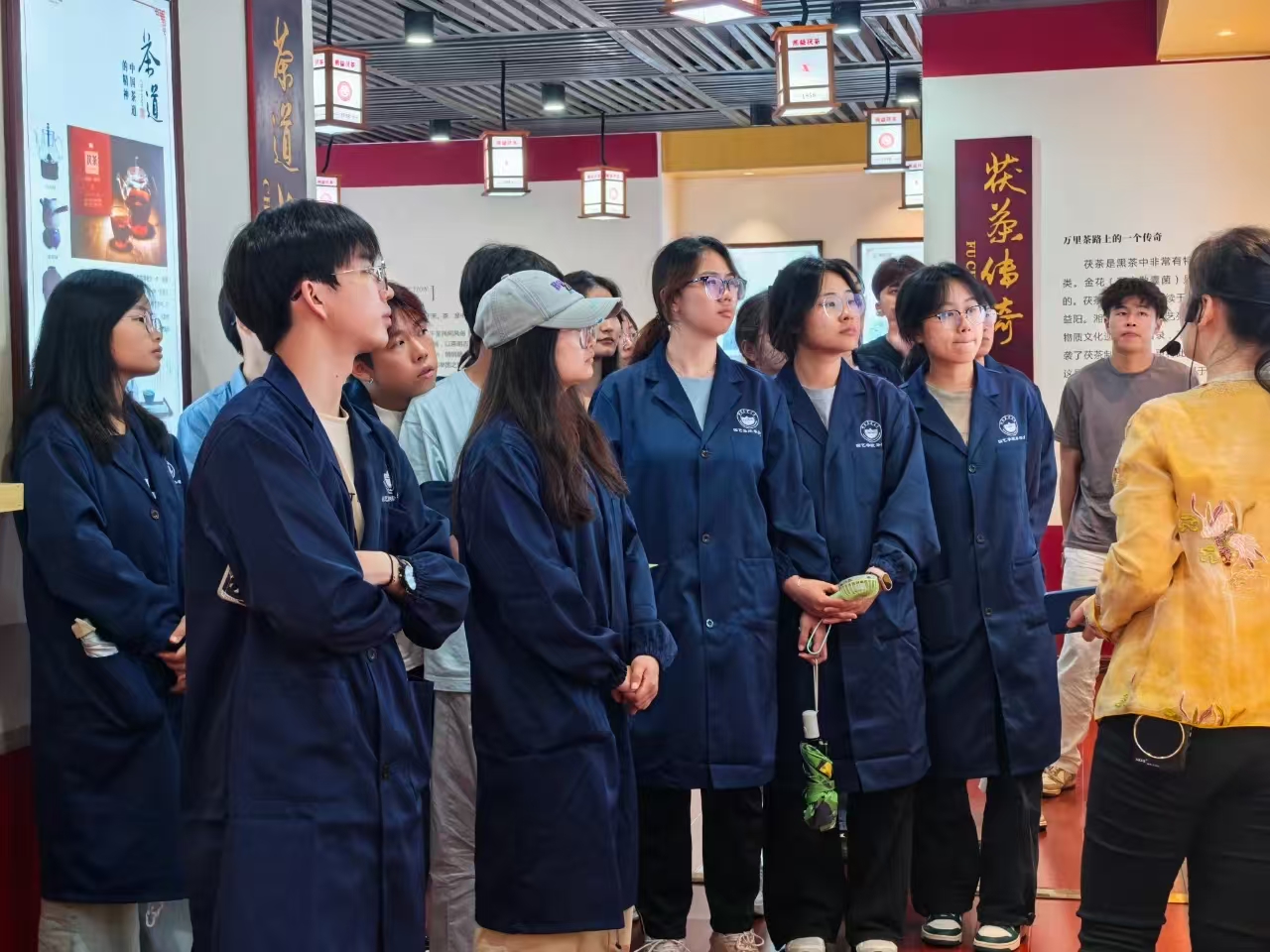 师生们首先实地参观了湘益生产线与茶博馆。在生产车间,同学们亲身感受益阳茶厂标准化、现代化的生产流程,对茯砖茶的制作工艺有了初步直观的了解。茶博馆内陈列的一件件展品,则如同一部生动的茶文化史书,让师生们沉浸式领略益阳茶厂深厚的文化底蕴,探寻茯茶的前世今生,深刻体会 “一片茶叶承载的使命”。