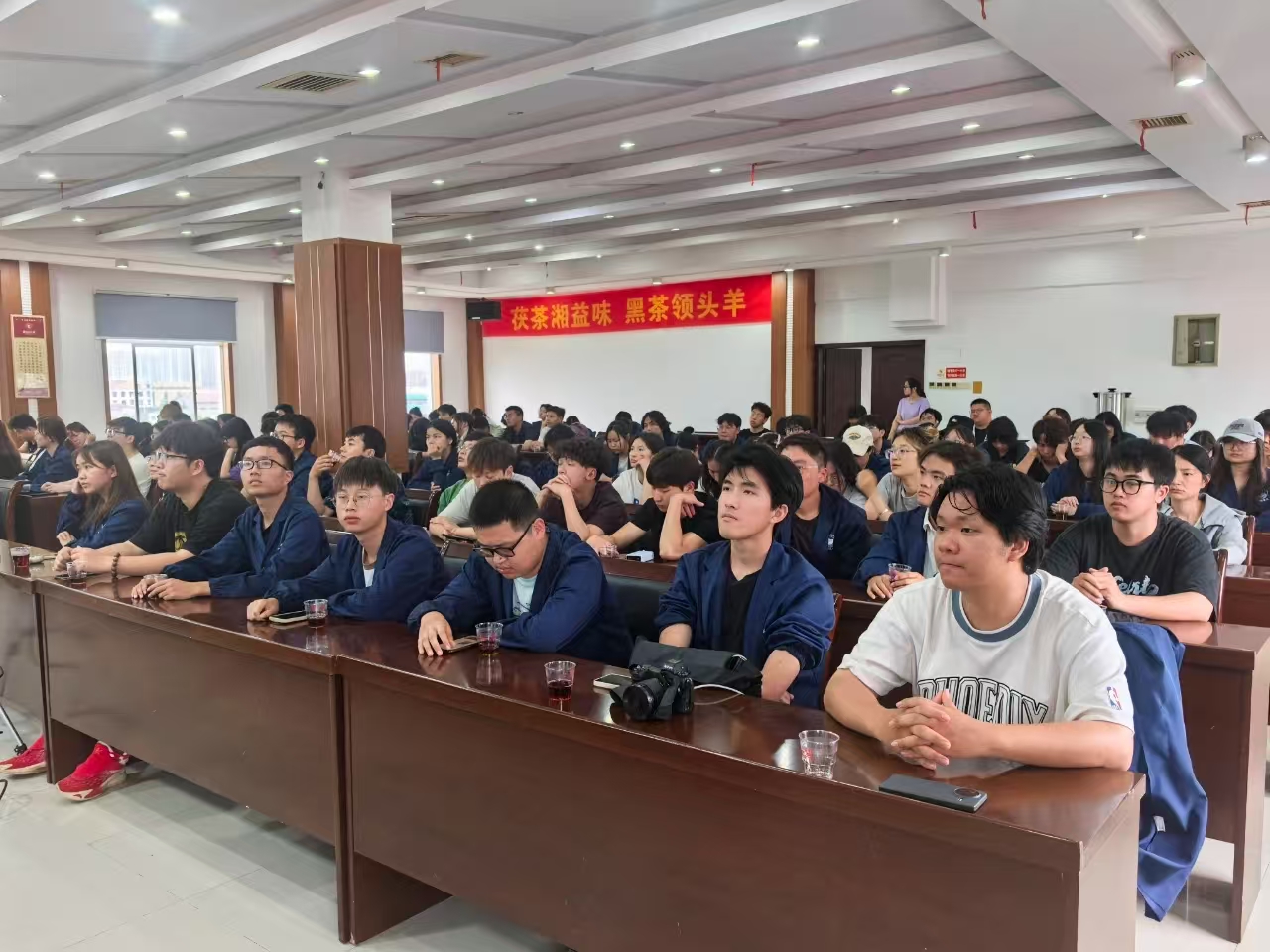 总经理余智勇在欢迎致辞中回顾校企渊源:“农大茶学系与益阳茶厂同诞生于1958年,始终并肩前行。”他提到,益阳茶厂的发展离不开农大等高校的智力支持,公司产品研发、生产等关键岗位大部分由农大学子担任,他们在工作中积极贡献智慧与力量,为公司的技术创新与生产运营提供了坚实的人才支撑。