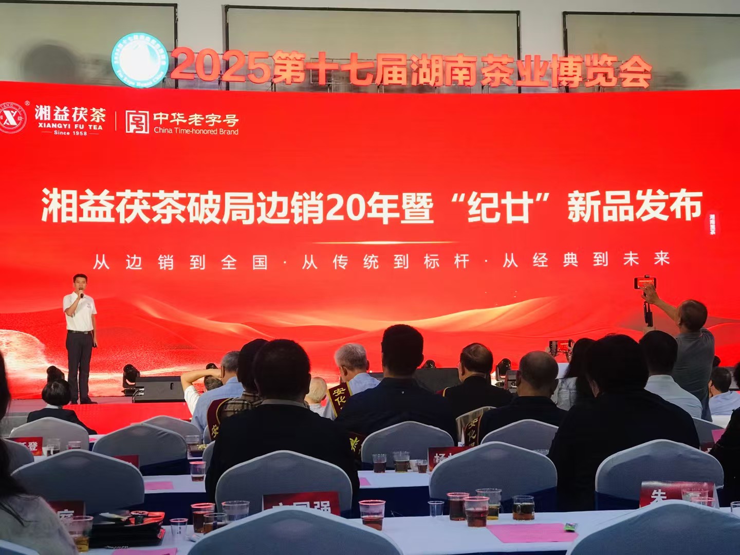 发布会现场,益阳茶厂总经理助理袁绪斌详细阐述了"纪廿"新品的研发背景与产品理念。二十年前,益阳茶厂怀着让茯茶香飘万里的初心,开启了从边销茶到内销健康饮品的转型之路,由刘杏益大师团队率先突破"高端原料发花"技术难关,研制出中国第一片中高档茯砖茶[一品茯茶、极品茯茶、湘益茯茶],从此改写了茯茶的历史轨迹。2025年,是湖南黑茶内销20周年,益阳茶厂以「纪廿」之名,致敬二十载工艺传承与内销启航,“纪”为纪念、纪元;“廿”为二十,纪念二十年,「纪廿」礼盒将三款传奇产品吉品茯茶、一品茯茶、湘益茯茶凝于一盒,开启茯茶新纪元。