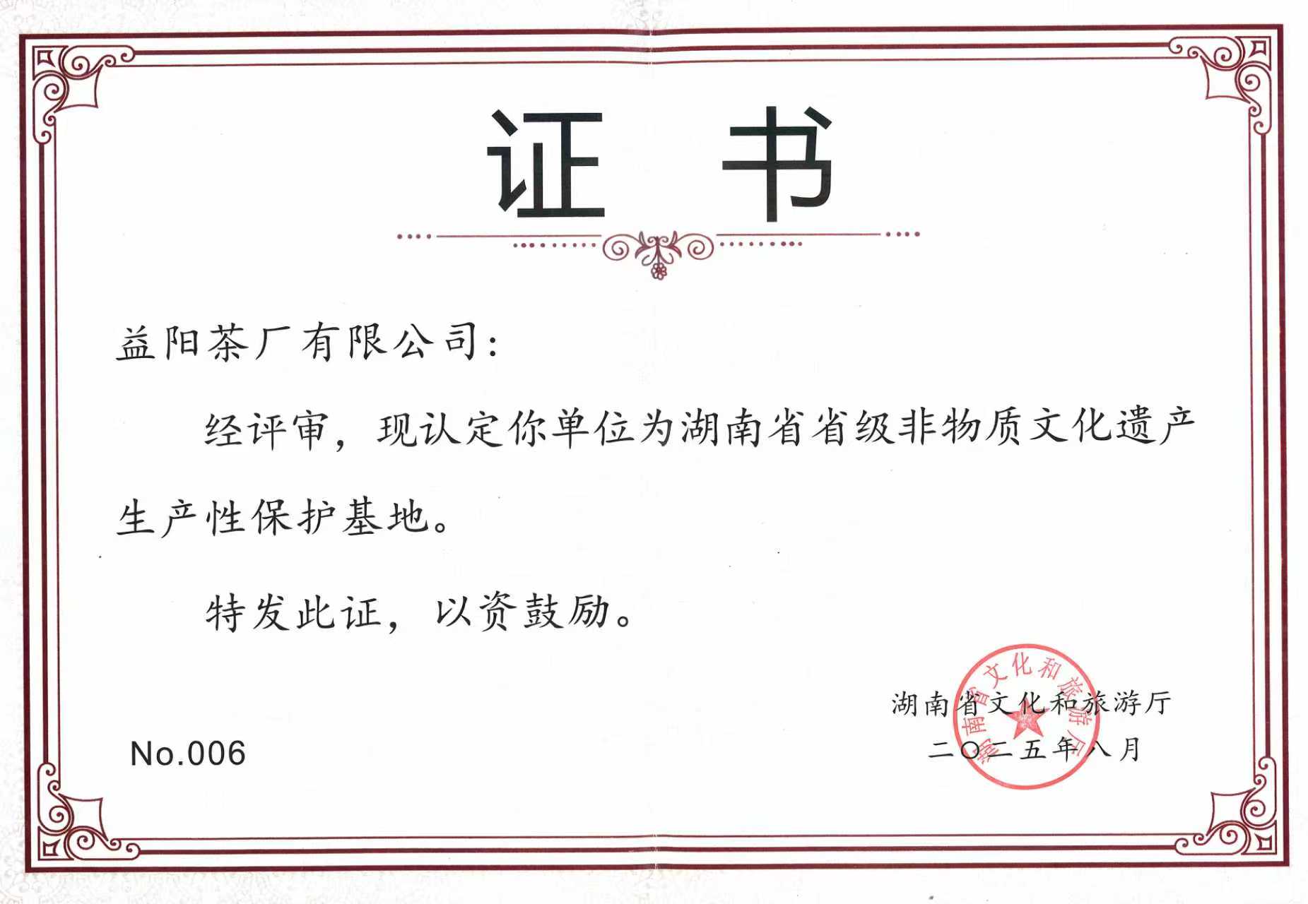 此次入选首批省级非物质文化遗产生产性保护示范基地,既是对益阳茶厂长期以来坚守传统、传承创新工作的充分肯定,更是对茯茶文化传承发展的有力推动。公司将以此为契机,继续做好非遗保护传承工作,让这一传统技艺在新时代焕发更加夺目的光彩。